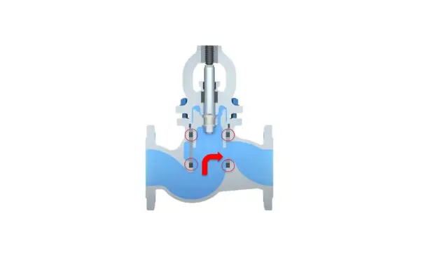 In globe valves, the seat system is located directly in the flow path and could be therefore continuously exposed to the process medium. In addition, temperature fluctuations and pressure differentials can increase the load on the sealing surfaces, as thermal and mechanical forces act directly on the seat system.