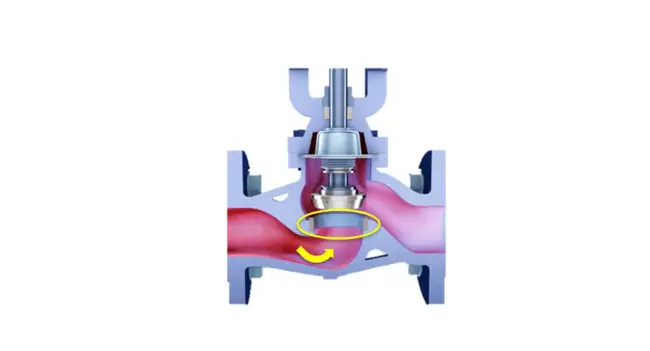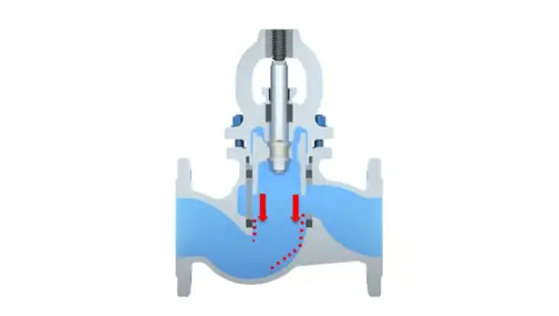 In conventional globe valves, the required operating torque increases significantly as the closure element approaches the seat or is lifted from it. This characteristic torque peak is inherent to the design and results from the direct contact between the plug and the seat.